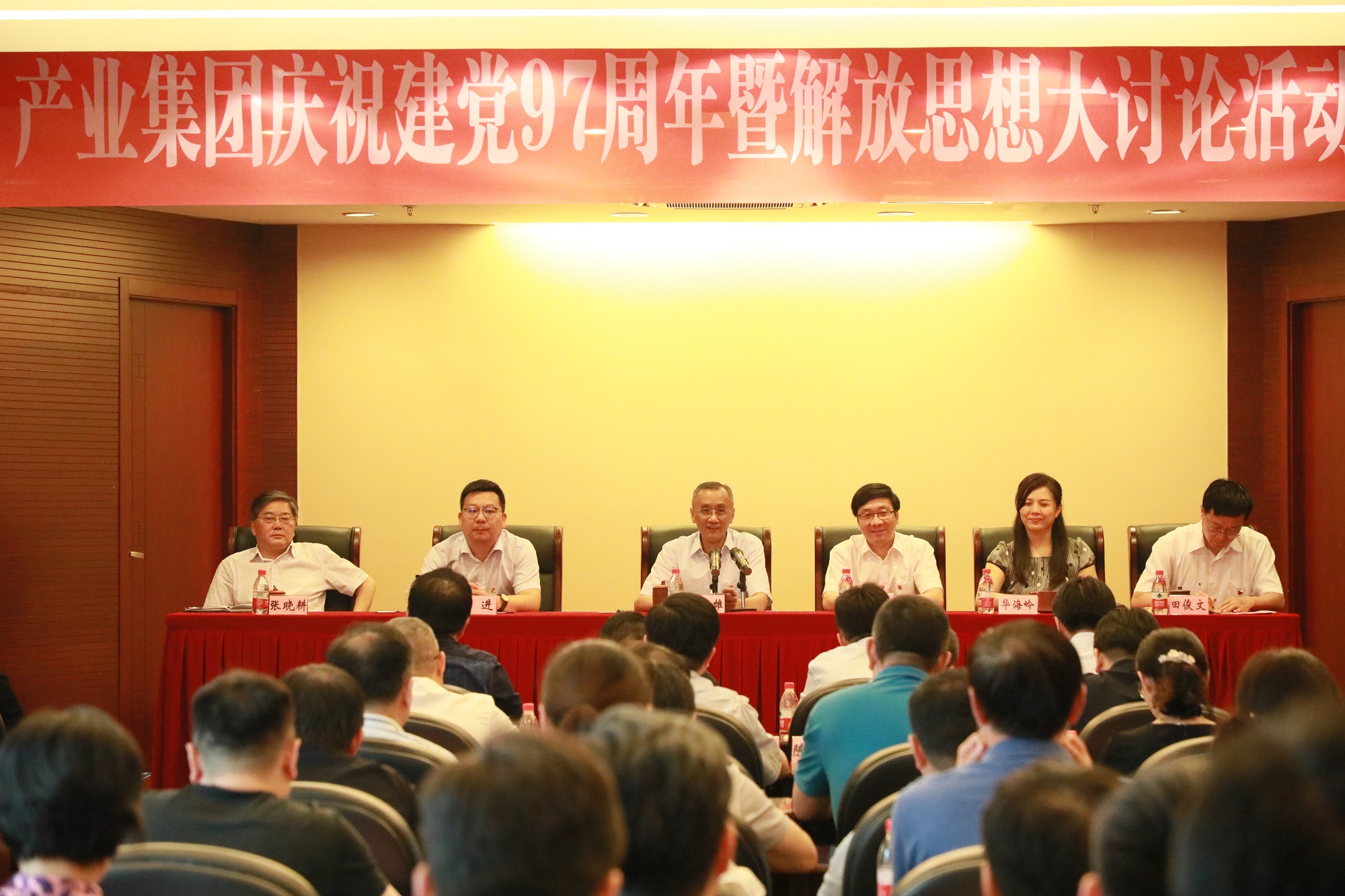 6月29日集团召开庆祝建党97周年暨解放思想大讨论活动推进会。集团领导班子成员,各所属企业党政主要领导、分管书记及党群部门负责人,集团本部中层以上干部、党员代表以及受表彰的先进基层党组织代表、全体优秀党员和优秀党务工作者等近120余人参加了会议。会议由集团党委副书记、工会主席刘涛主持。